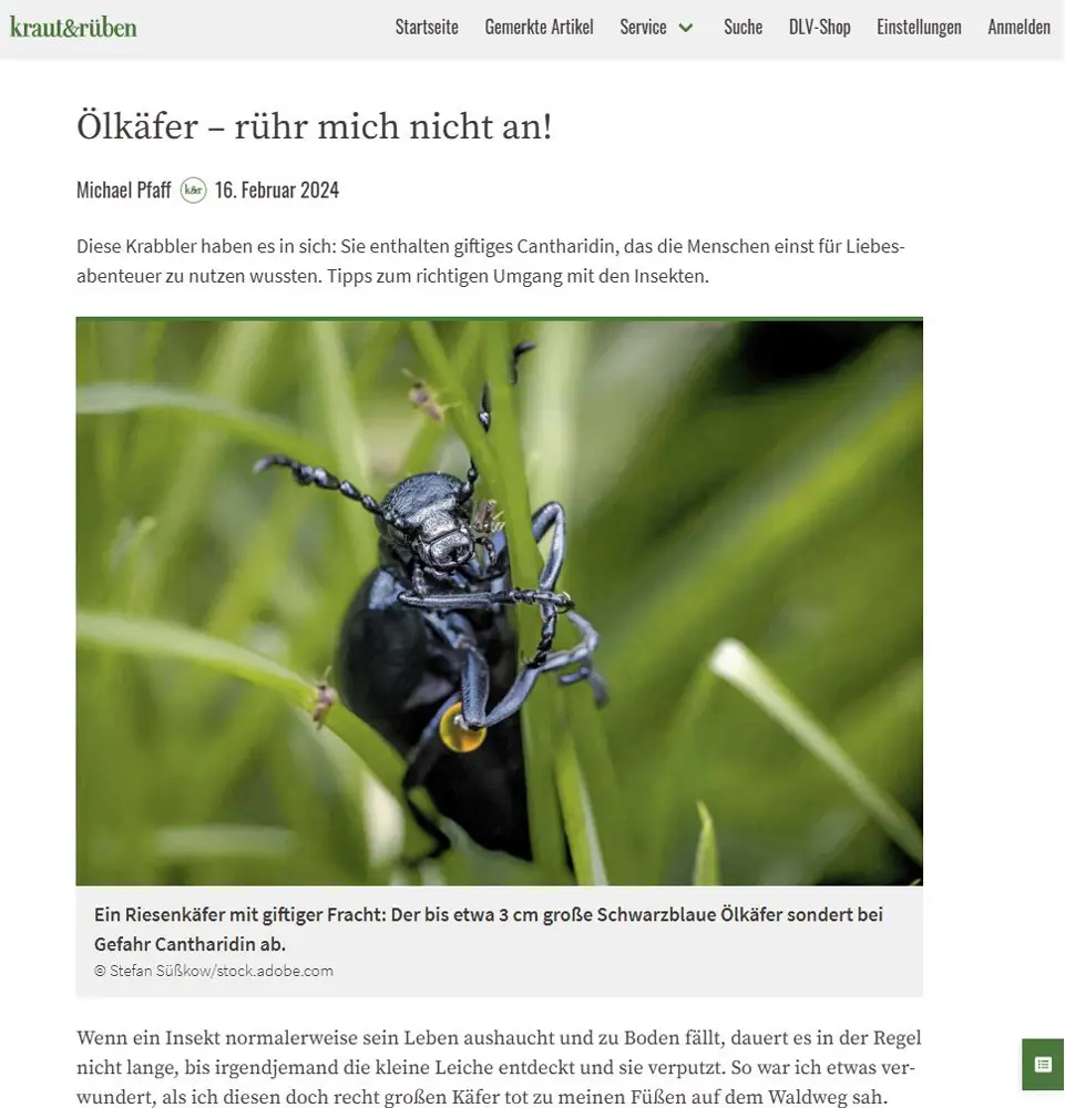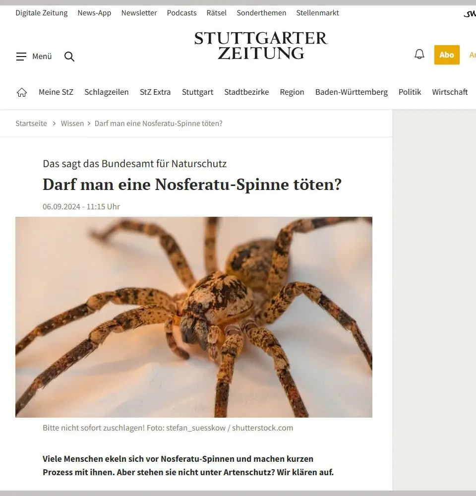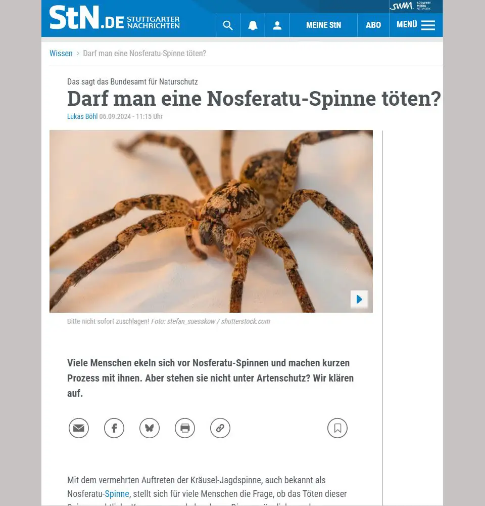 GEO.de Eichelbohrer mikefrenchcreative.co.uk Ölkäfer Magazin kraut & rüben Ölkäfer Stuttgarter-Nachrichten Nosferatu-Spinne Stuttgarter-Zeitung Nosferatu-Spinne Regierungspräsidium Nosferatu-Spinne housedigest.com Nosferatu-Spinne shop dobar Nosferatu-Spinne